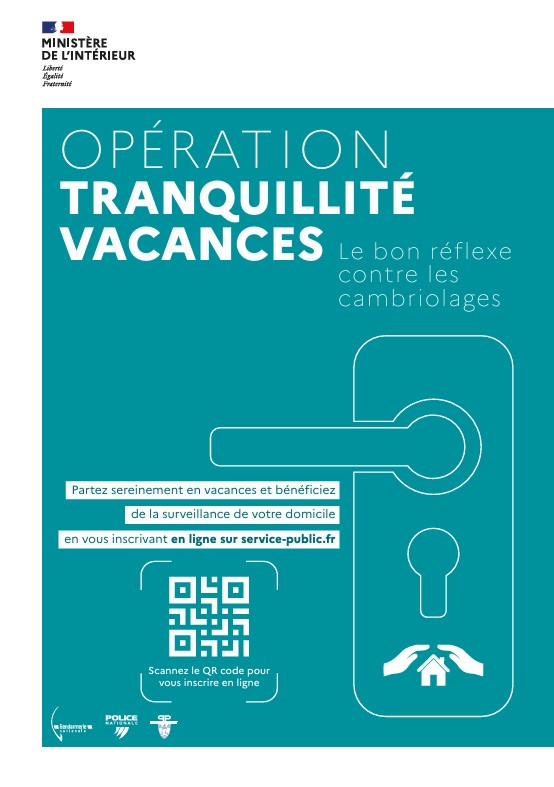 A l’approche des vacances scolaires et au vu de la recrudescence des cambriolages ces derniers temps, nous vous invitons à découvrir l’opération tranquillité vacances (OTV) communiquée par le ministère de l’intérieur.